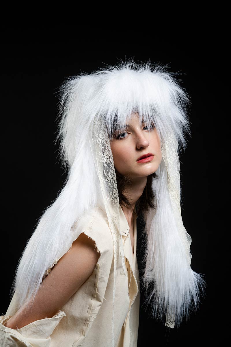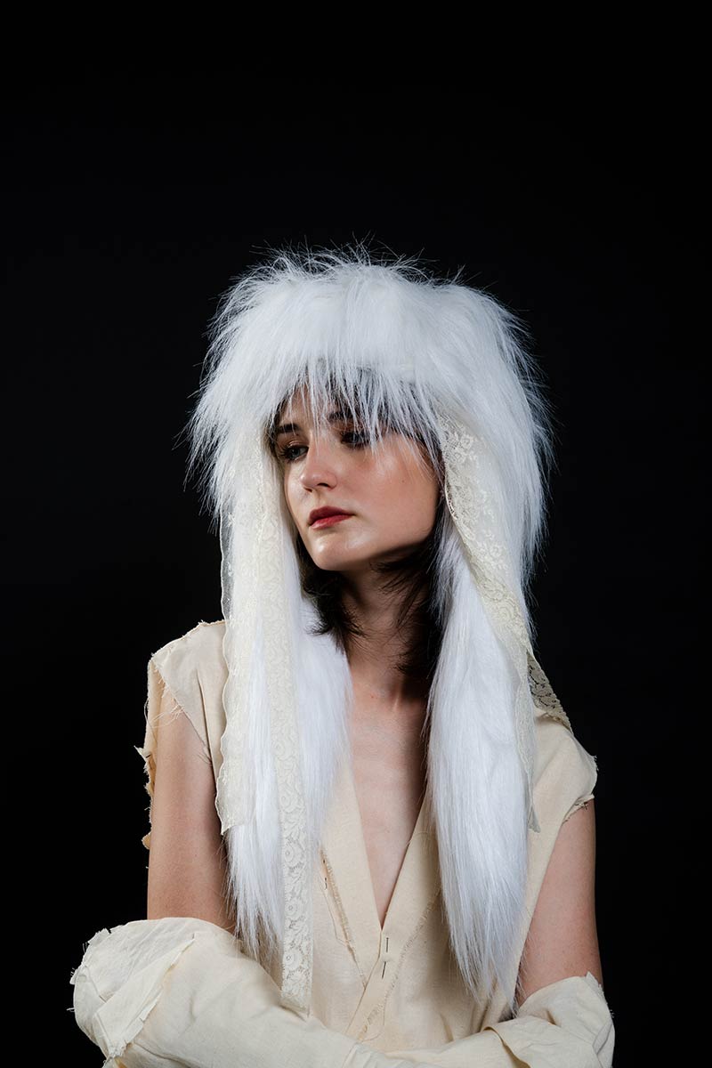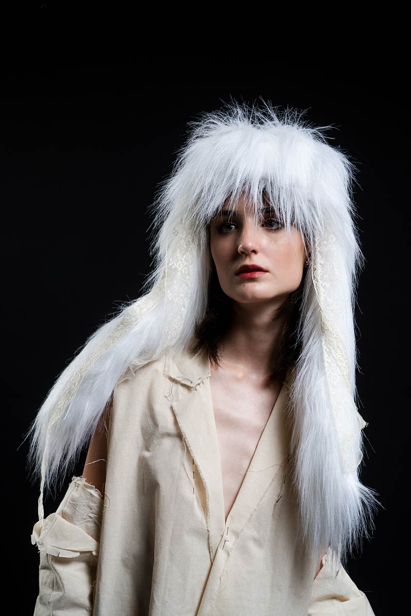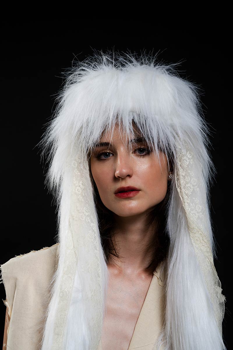 Maxi sombrero inspiración ruso de pelo con cierre al cuello en tiras de encaje. Talla única.